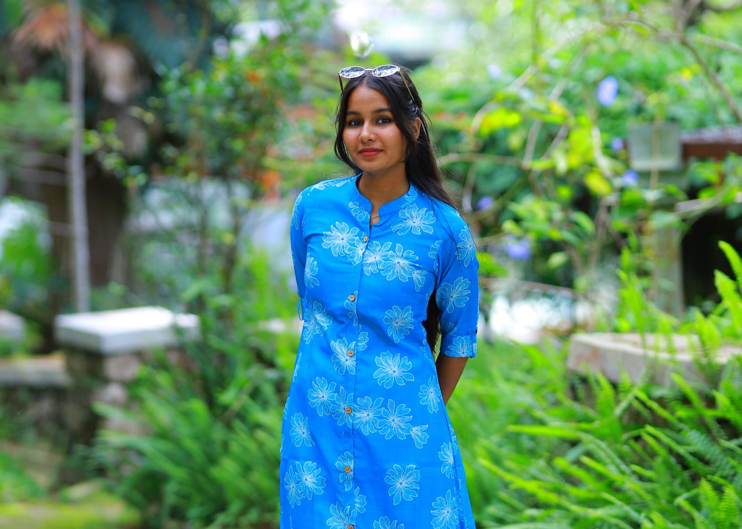 Pichwai Blue, Kollam Silk Kurta - ST-034