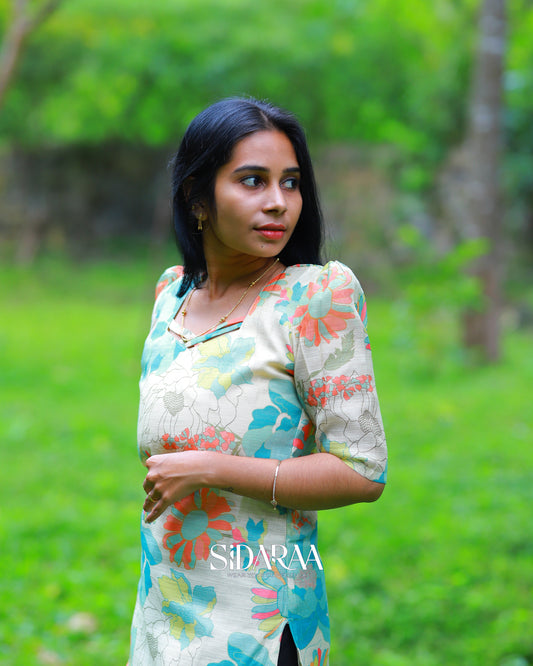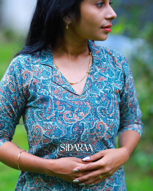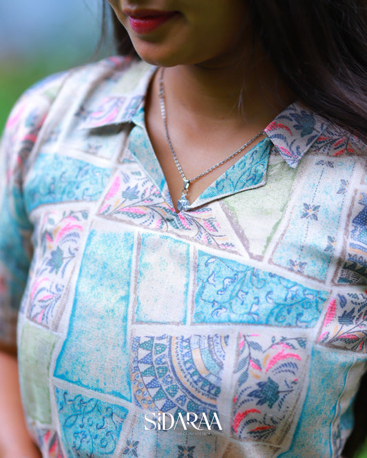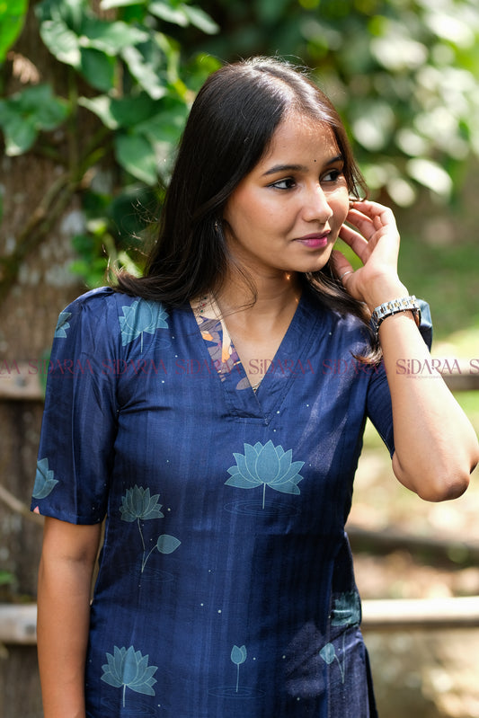 Pichwai Blue, Kollam Silk Kurta - ST-034