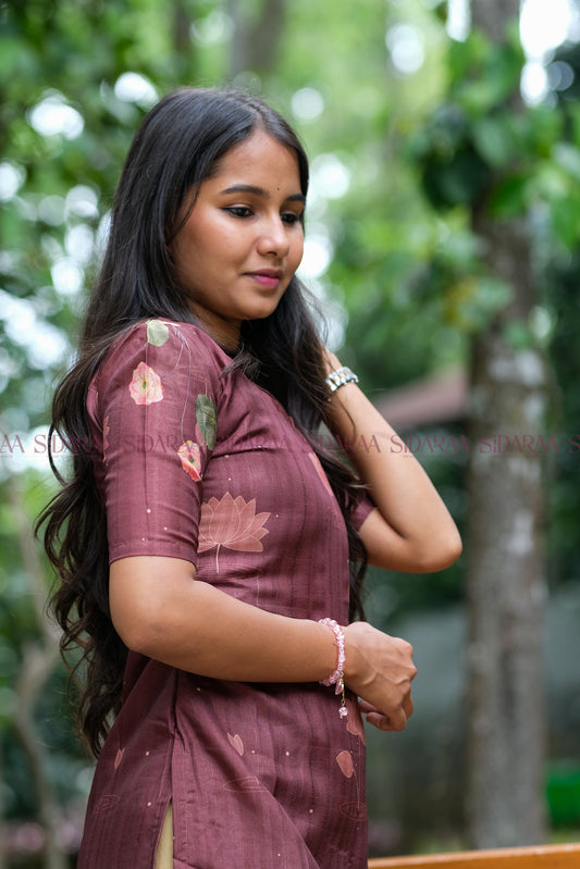 Pichwai Maroon , Kollam Silk Kurta - ST-035