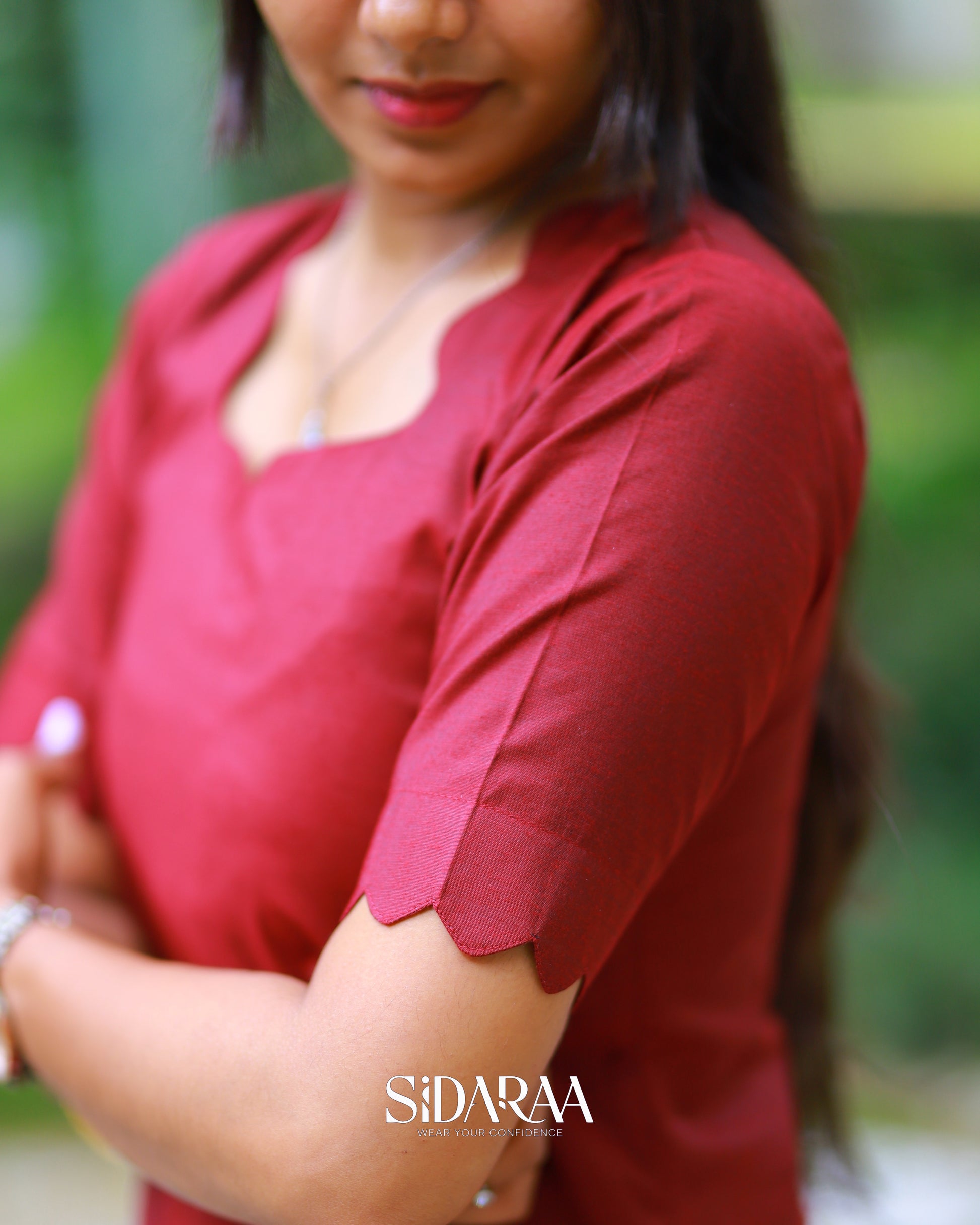 Sidaraa’s Antique ruby salwar Set, crafted from breathable Chanderi , showcases traditional handloom artistry with modern comfort. This stitched kurta, pant, and dupatta set is perfect for casual and festive wear.