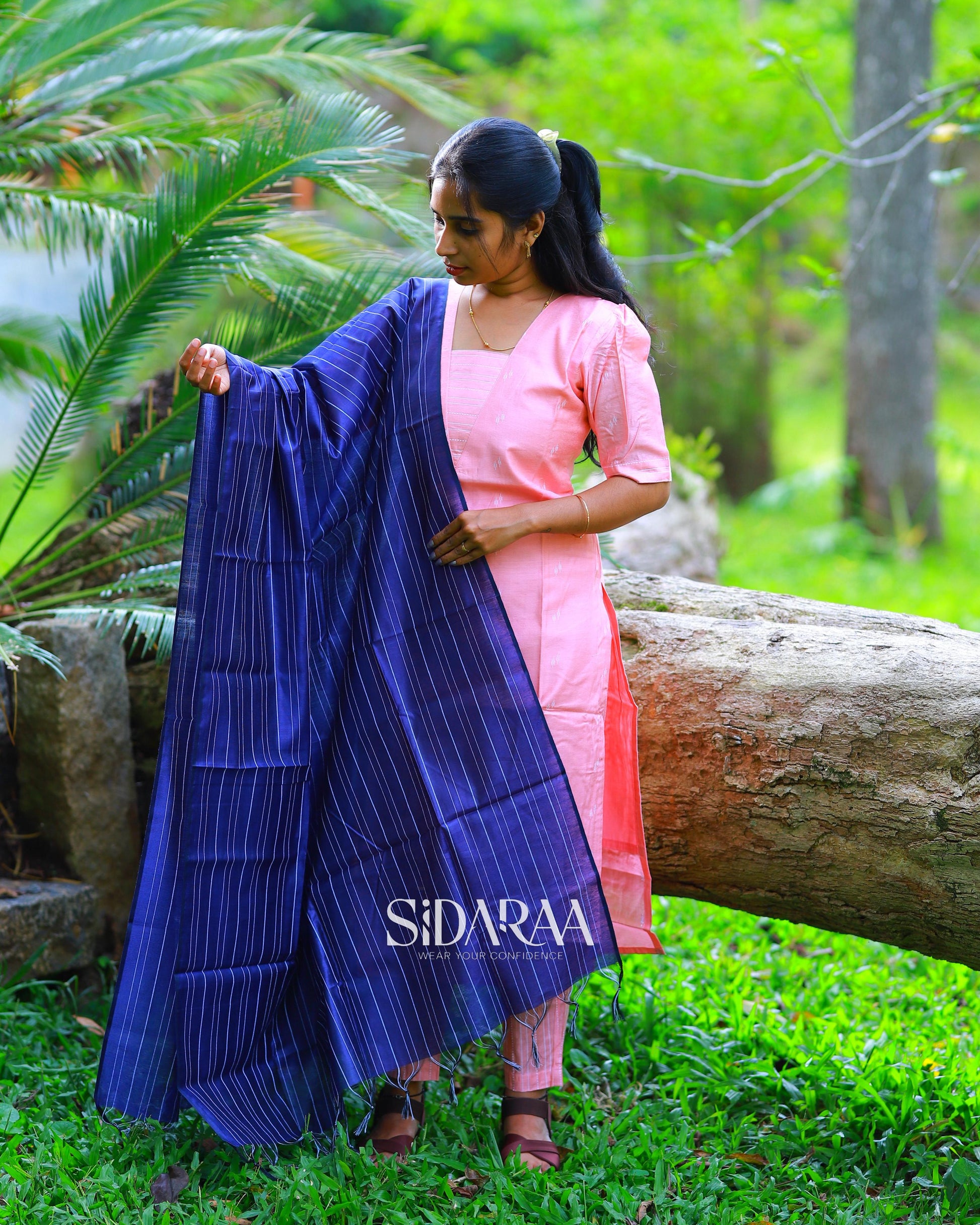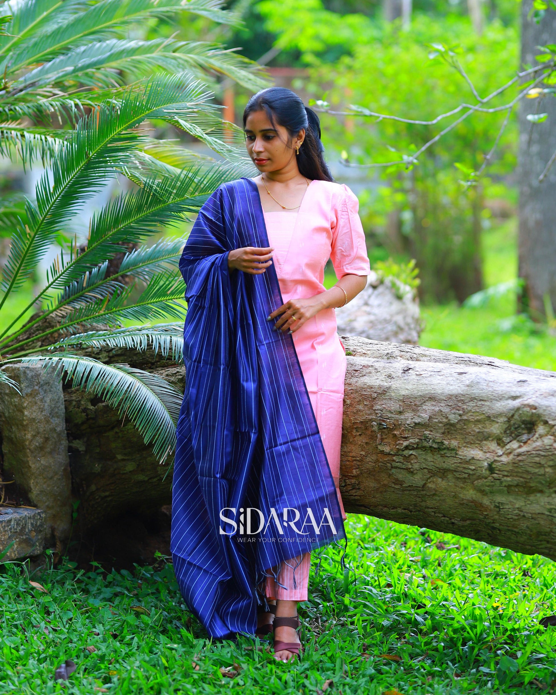 Sidaraa’s Flamingo pink Salwar Set, crafted from breathable malai cotton, showcases traditional handloom artistry with modern comfort. This stitched kurta, pant, and dupatta set is perfect for casual and festive wear.