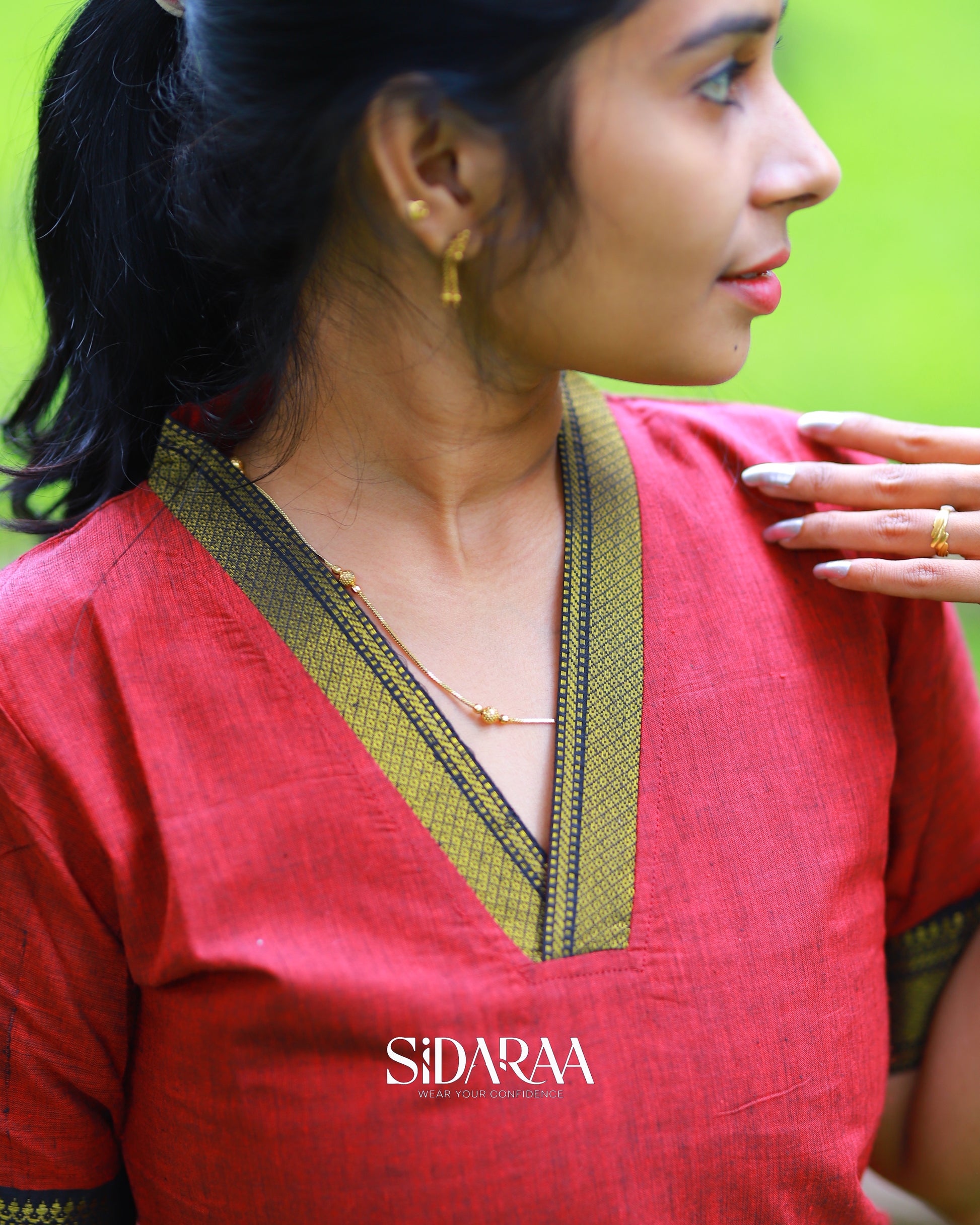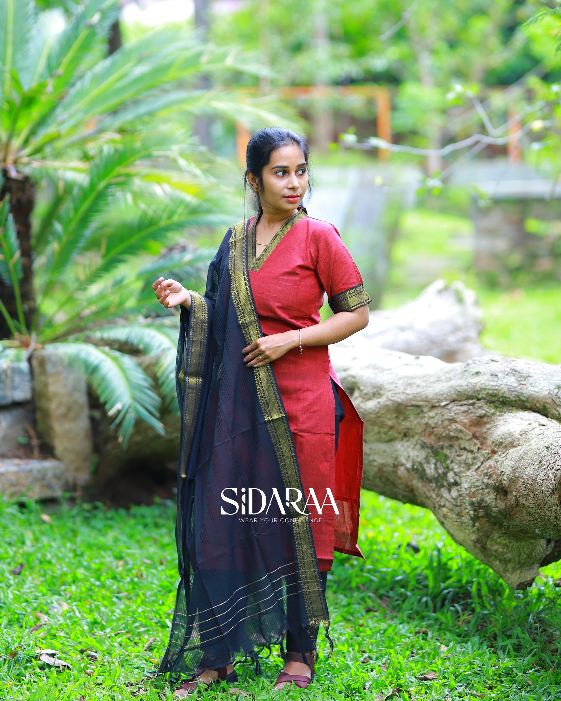 Sidaraa’s Mangalgiri Merun Salwar Set, crafted from breathable material ,offers a rich blend of tradition and elegance. Ideal for festive and special occasions, it’s a timeless wardrobe essential.