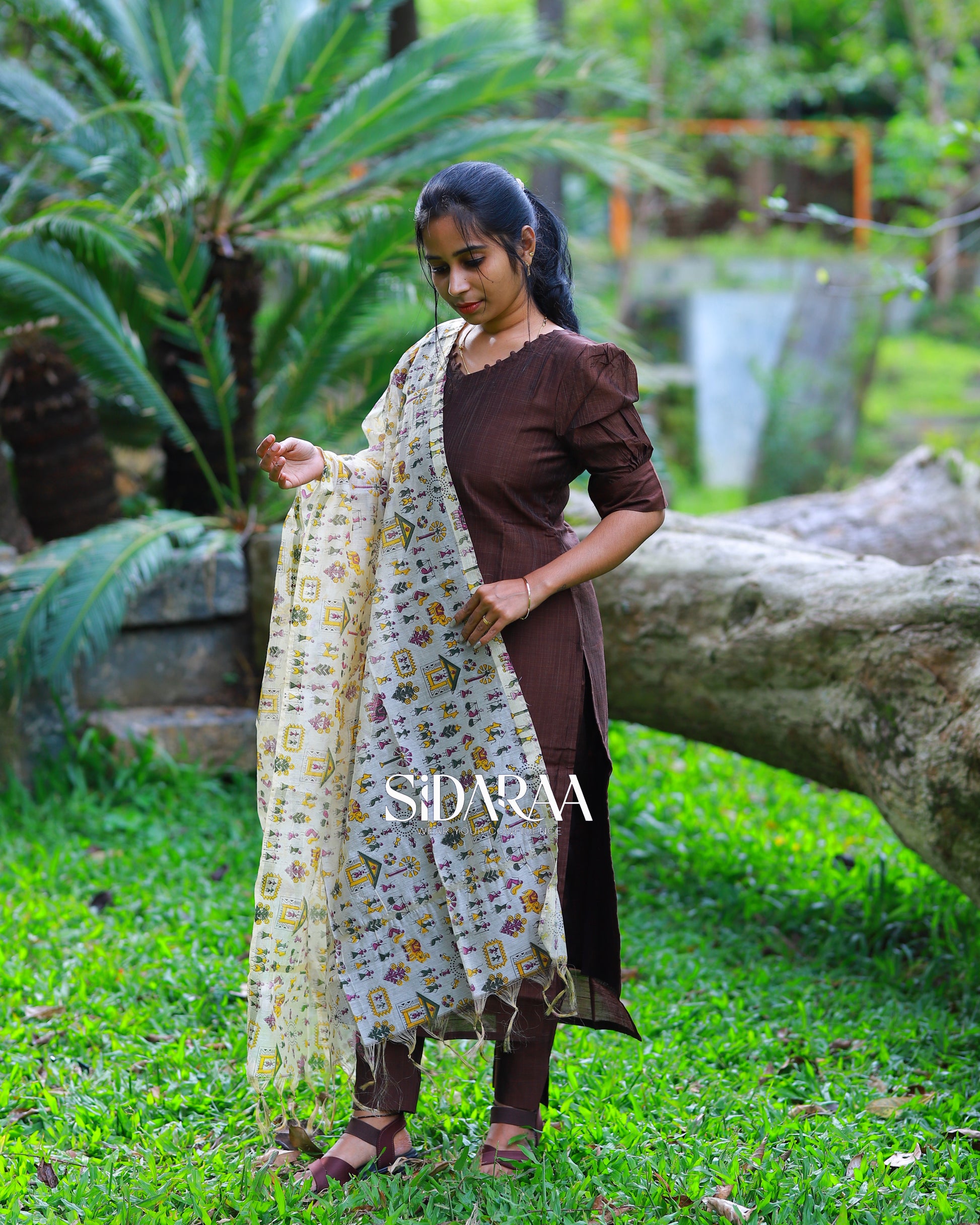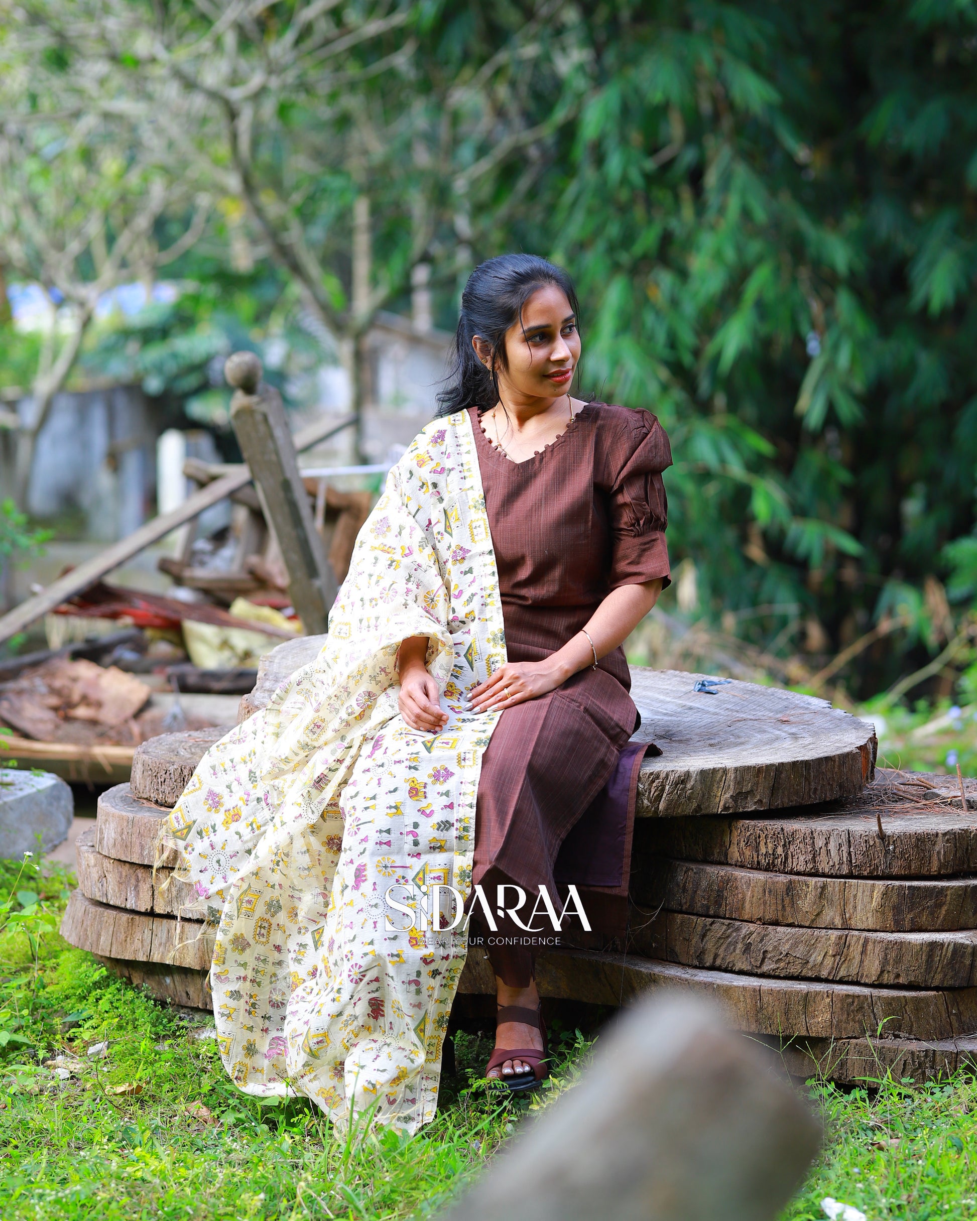 Sidaraa’s Mystery Coffee salwar suit, crafted from graceful Silk, add a touch of sophistication to your ethnic wardrobe. Made from soft, breathable fabrics that will keep you comfortable all day long. With a stitched kurta, pant, and dupatta, it’s ideal for everyday wear, work, occasion, etc.