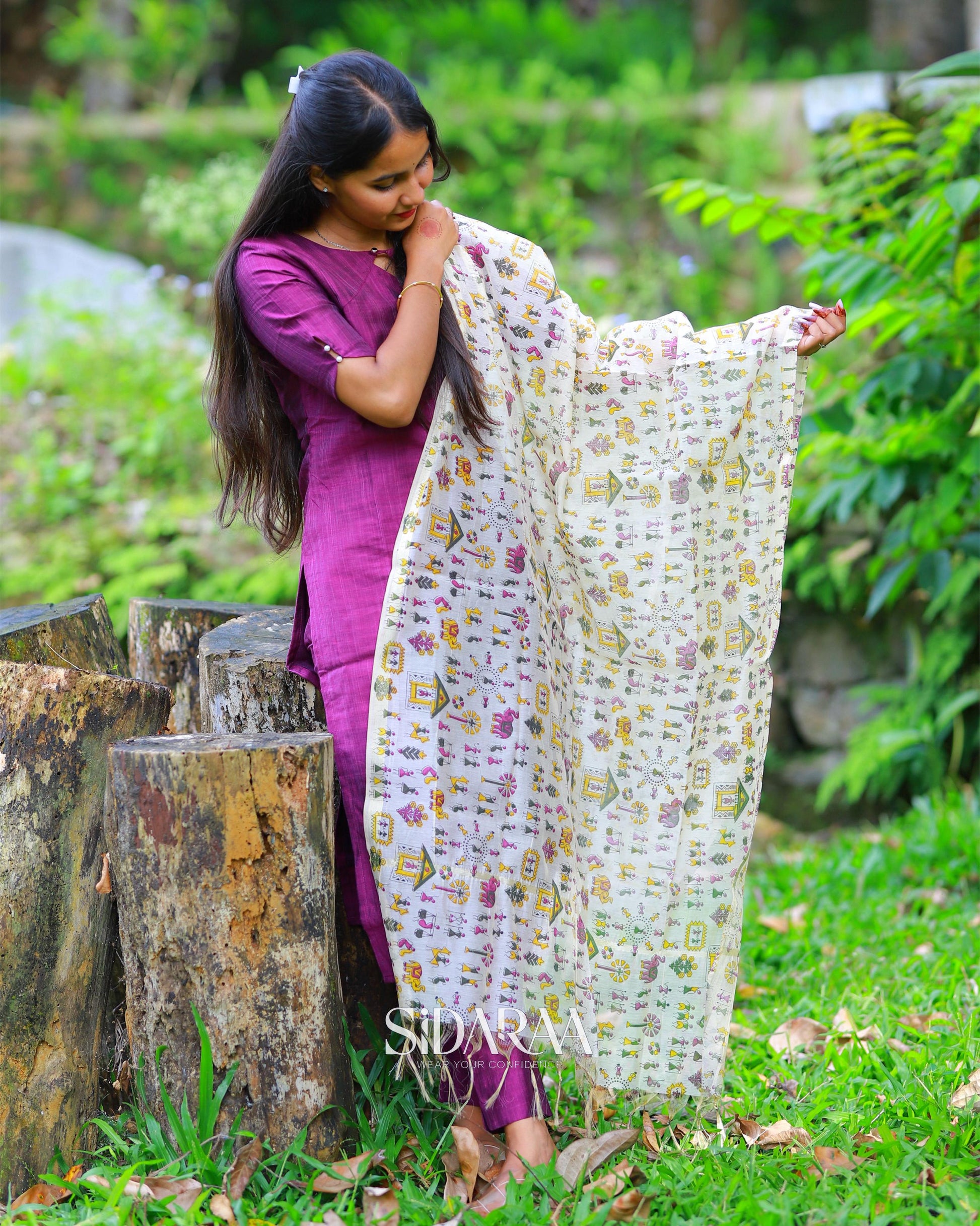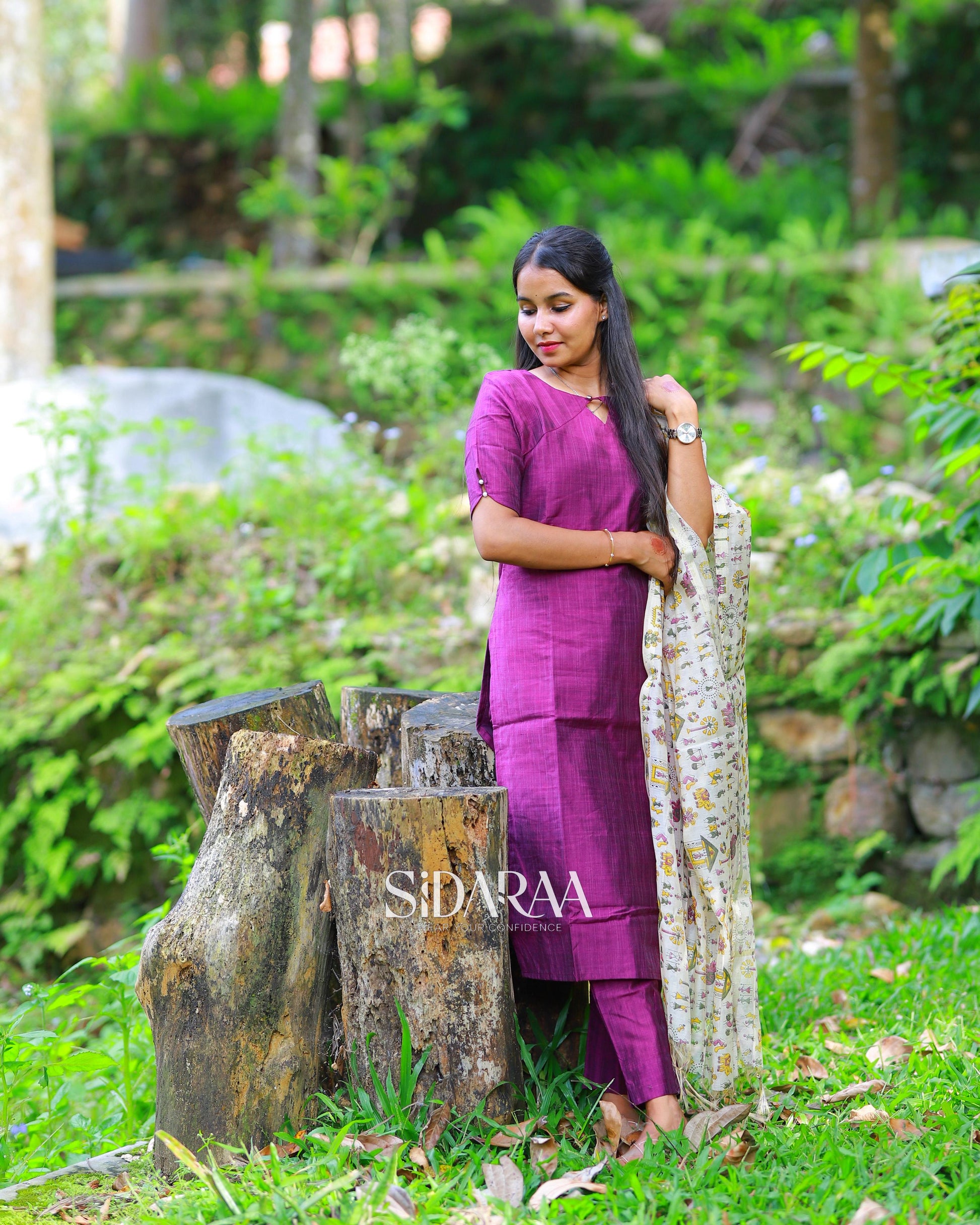 Sidaraa’s Mystery purple salwar Set, crafted from graceful Cotton , add a touch of sophistication to your ethnic wardrobe. Made from soft, breathable fabrics that will keep you comfortable all day long. With a stitched kurta, pant, and dupatta, it’s ideal for everyday wear ,work, occasion....