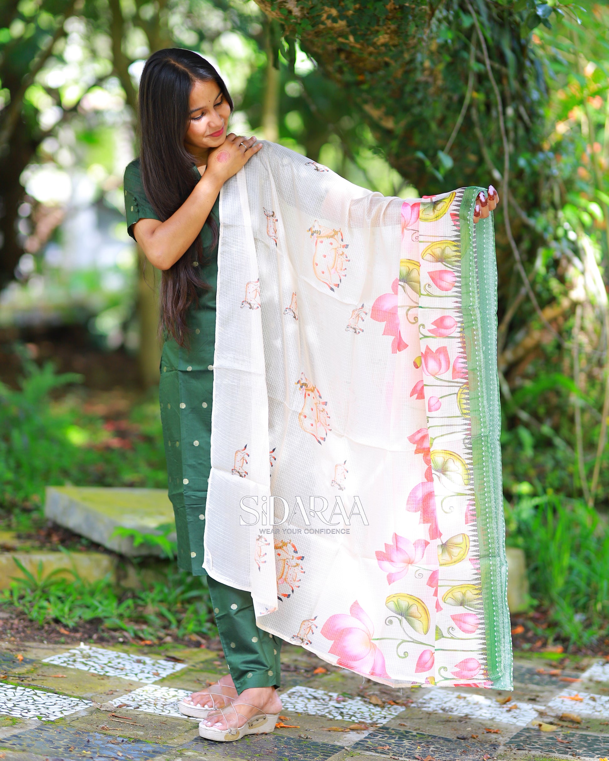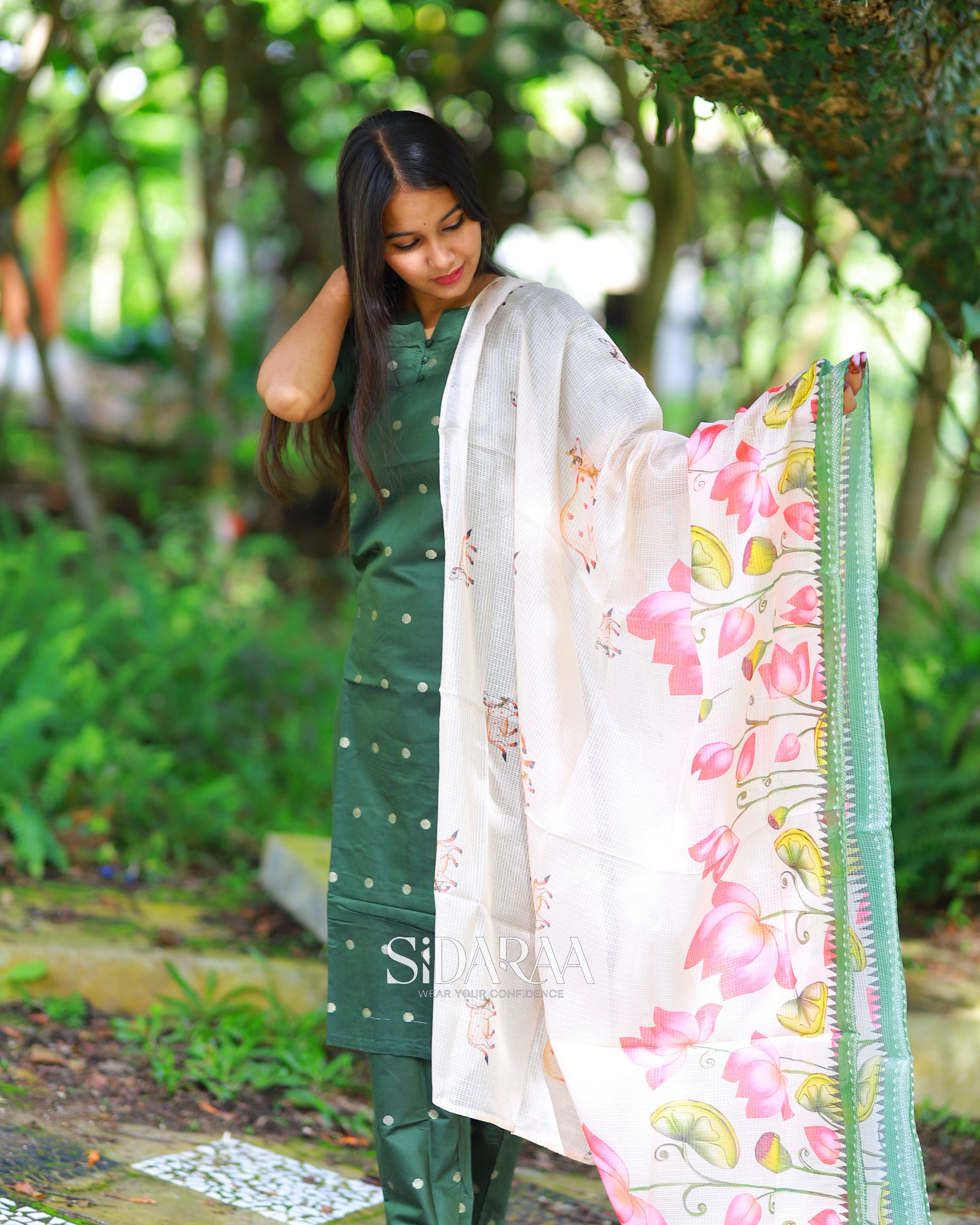 Sidaraa’s Nature's Harmony Salwar set crafted from breathable chanderi material offers a rich blend of tradition and elegance with pichwai kota dupatta . Ideal for festive and special occasions, it’s a timeless wardrobe essential.
