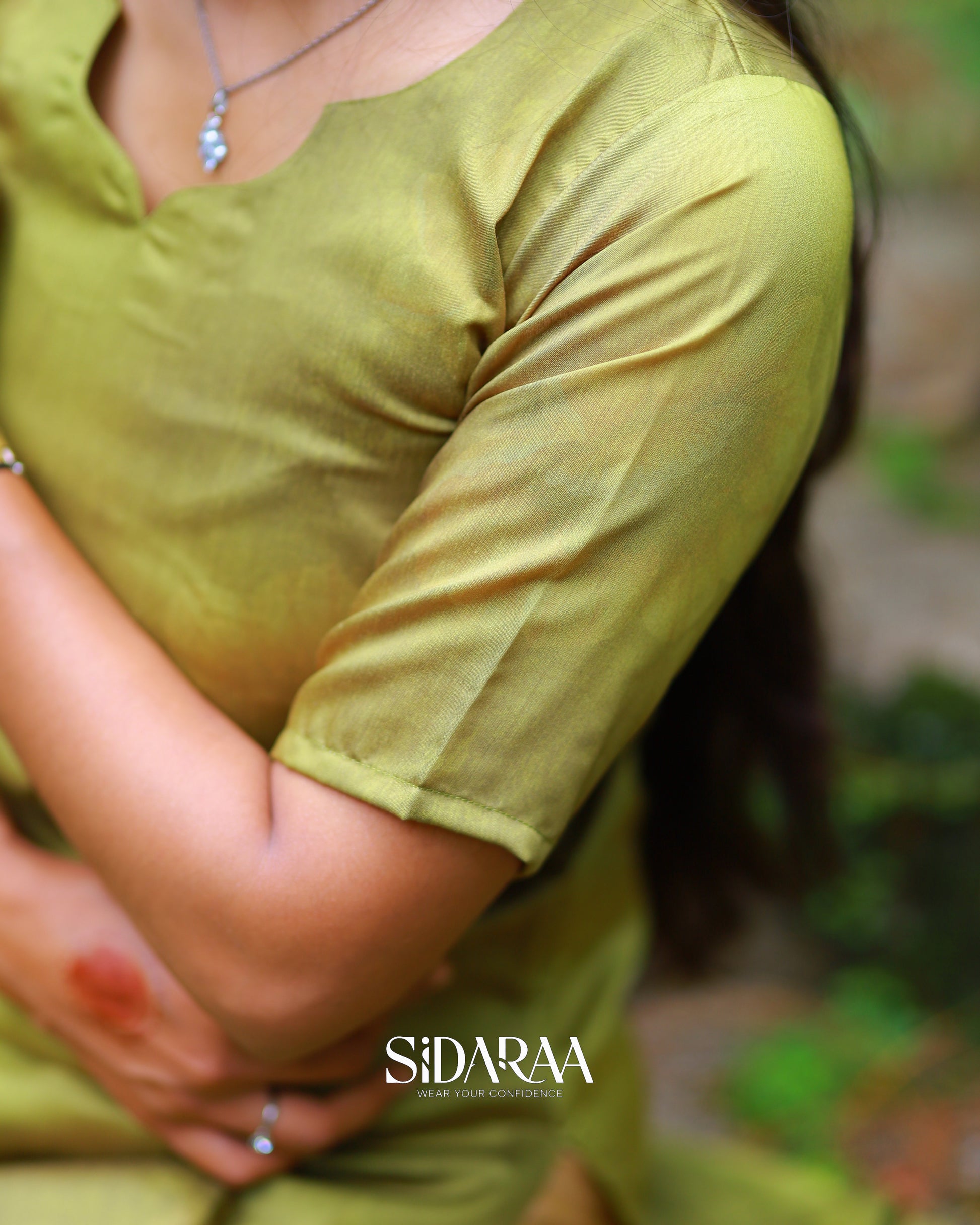 Sidaraa’s Olive Elegance top and dupatta set, crafted from breathable material, showcases traditional handloom artistry with modern comfort. This stitched kurta, and dupatta set is perfect for casual and festive wear.