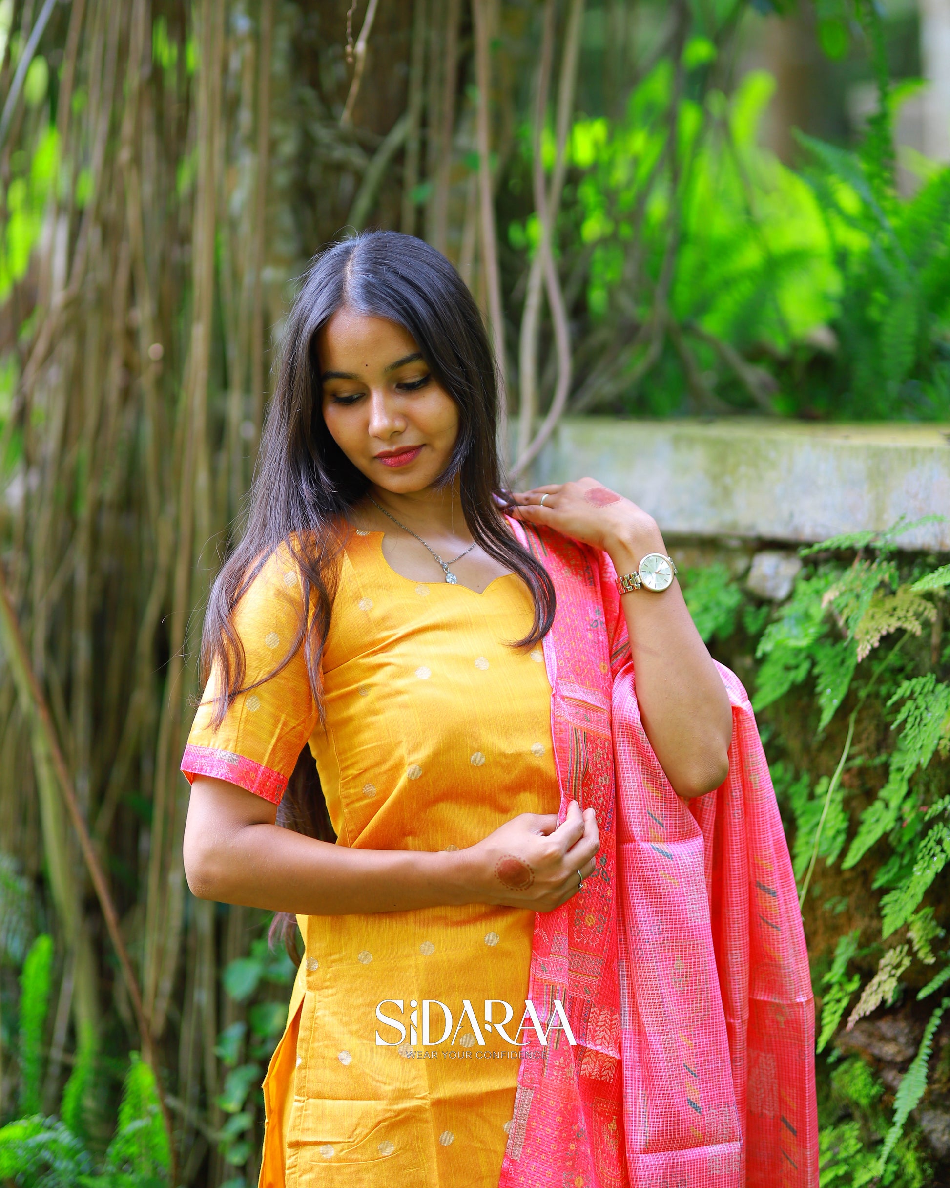 Sidaraa’s Rangoli Radiance Salwar Set, crafted from breathable chanderi material ,offers a rich blend of tradition and elegance. Ideal for festive and special occasions, it’s a timeless wardrobe essential.