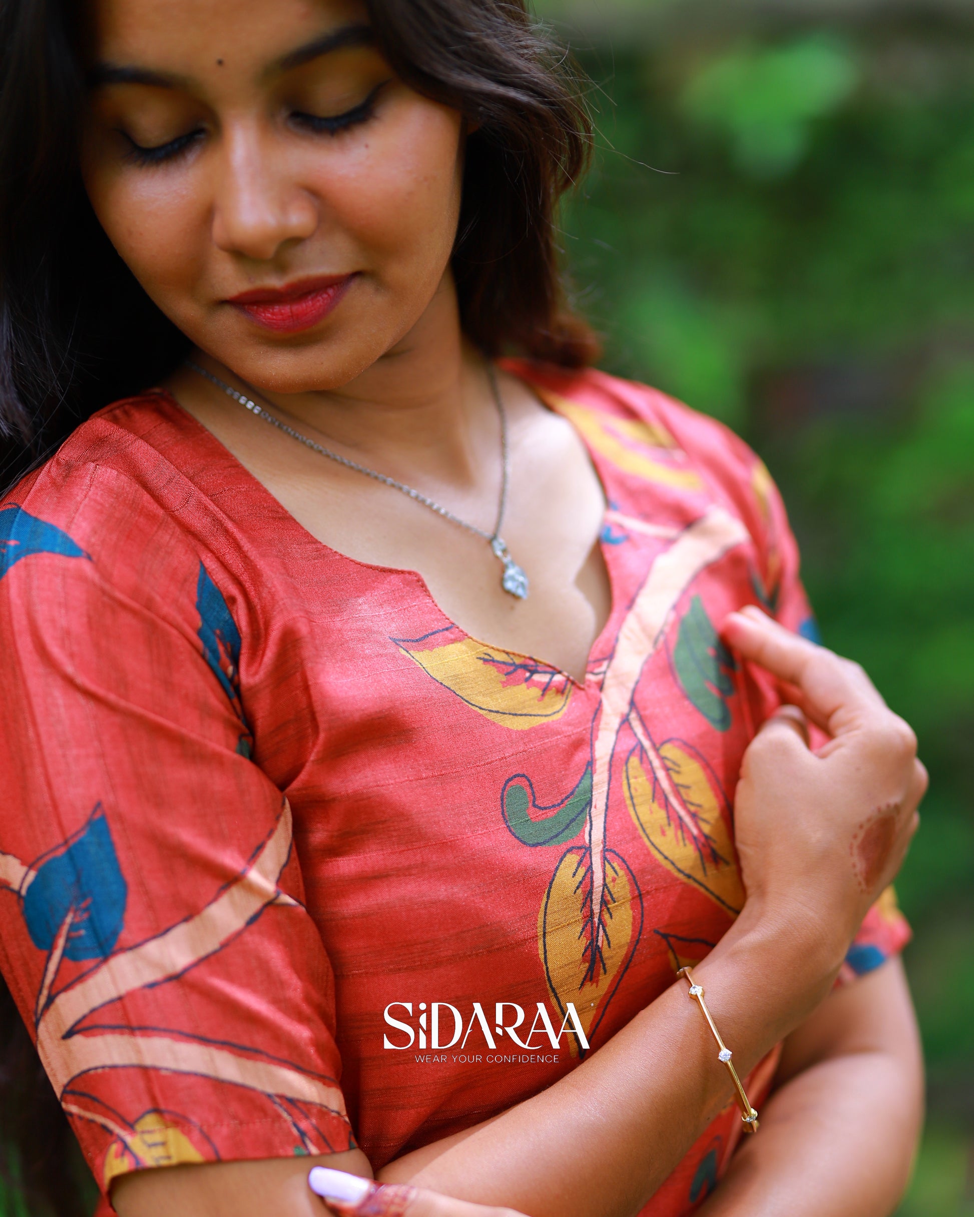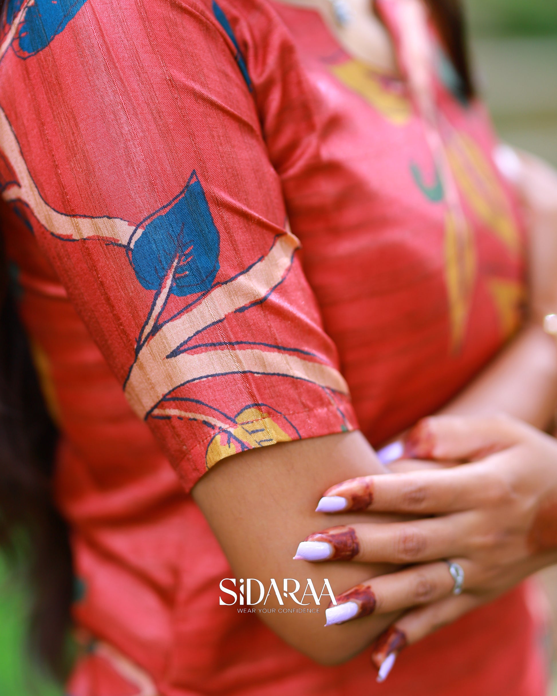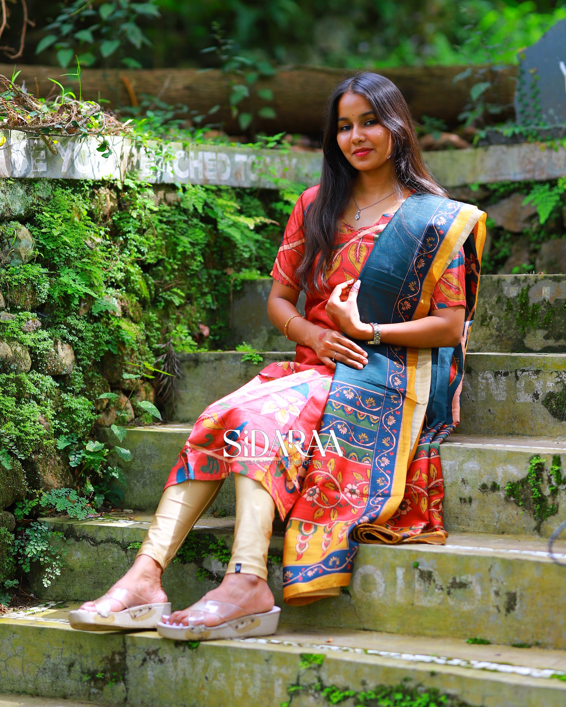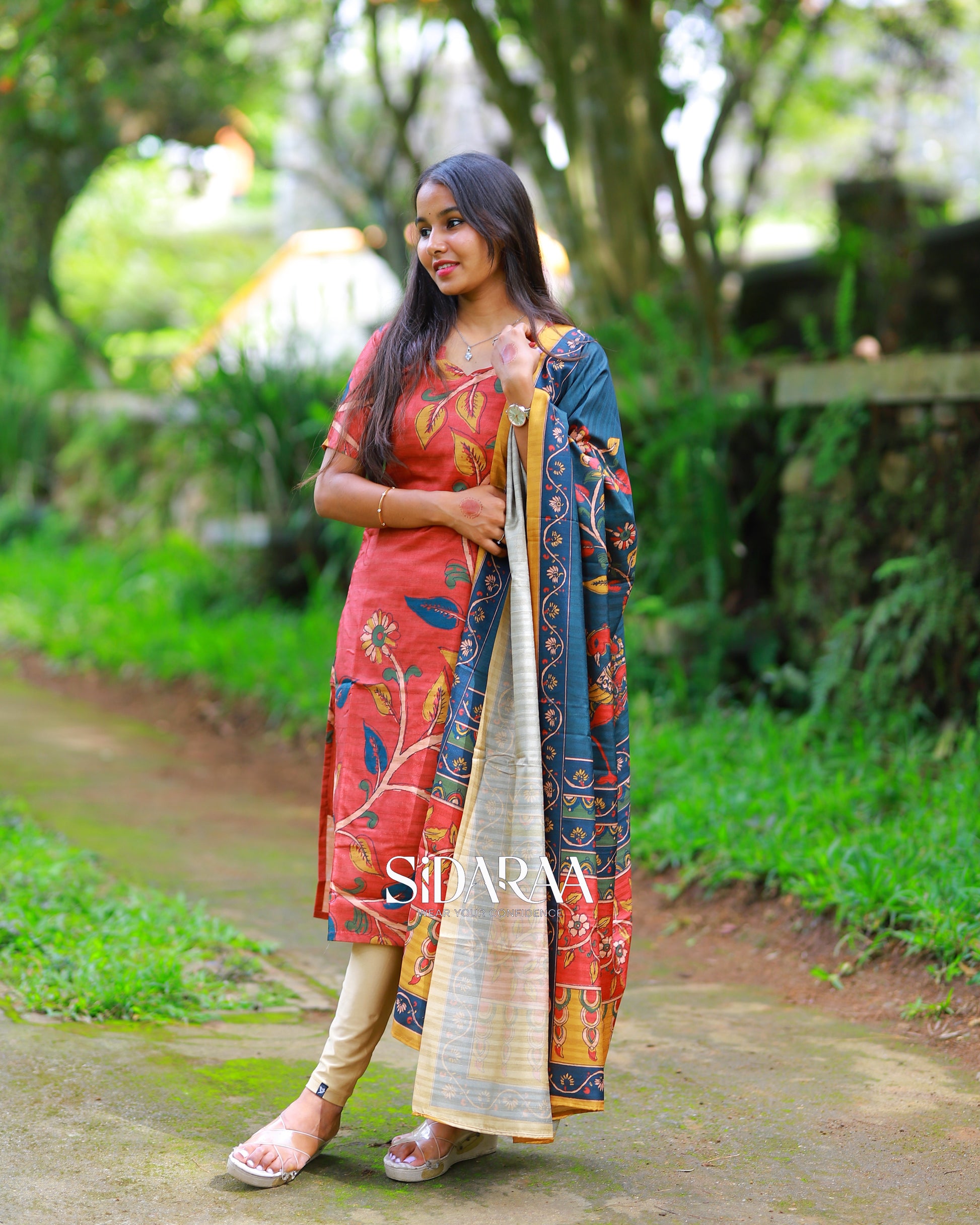 Sidaraa’s Red Lady top and dupatta set, crafted from breathable material, showcases kalamkari digital printed dupatta with modern comfort. This stitched kurta, and dupatta set is perfect for casual and festive wear.